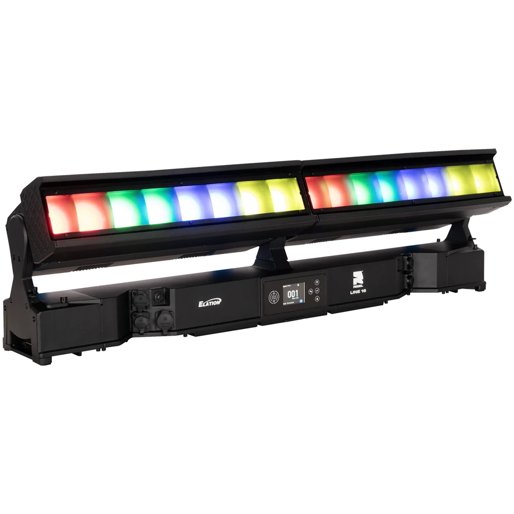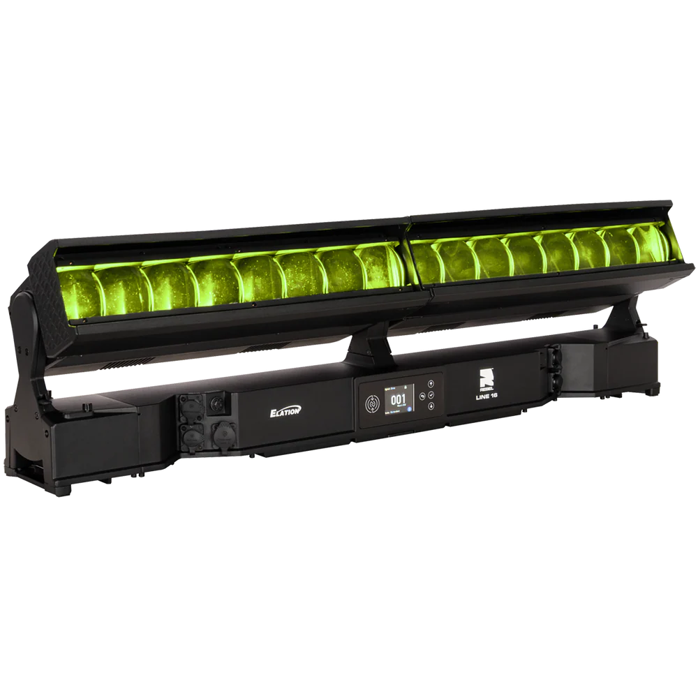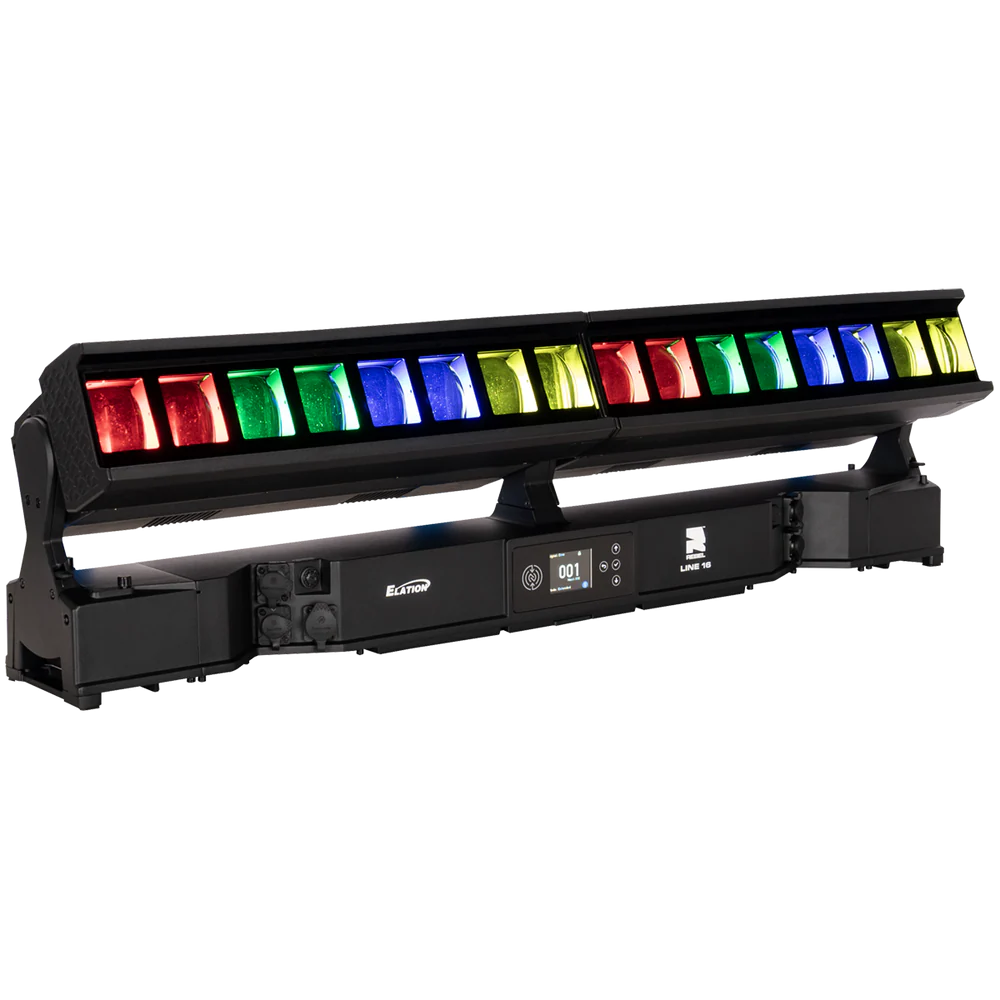 Die REBEL LINE 16 ist eine linear aufgebaute, motorisierte LED-Bar für den professionellen Einsatz in Bühnen-, Event- und Architekturbeleuchtung, bei der ein hoher Lichtoutput mit segmentierter Pixelansteuerung kombiniert wird. Das System arbeitet mit 16 RGBL-LED-Engines (je 60 W) und ergänzt diese um 32 kaltweiße SparkX-LED-Pixel (je 5 W), sodass neben einer gleichmäßigen Flächenbeleuchtung auch strukturierte Pixel- und Akzent-Effekte realisierbar sind. Der Gesamtlichtstrom beträgt 25.355 lm und unterstützt Anwendungen von kräftigen Wash-Looks bis zu klar definierten, grafischen Linien- und Pixelbildern – auch über größere Distanzen.