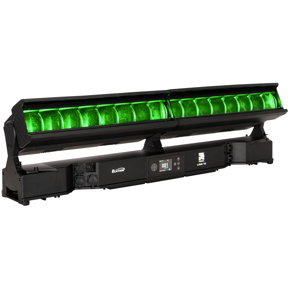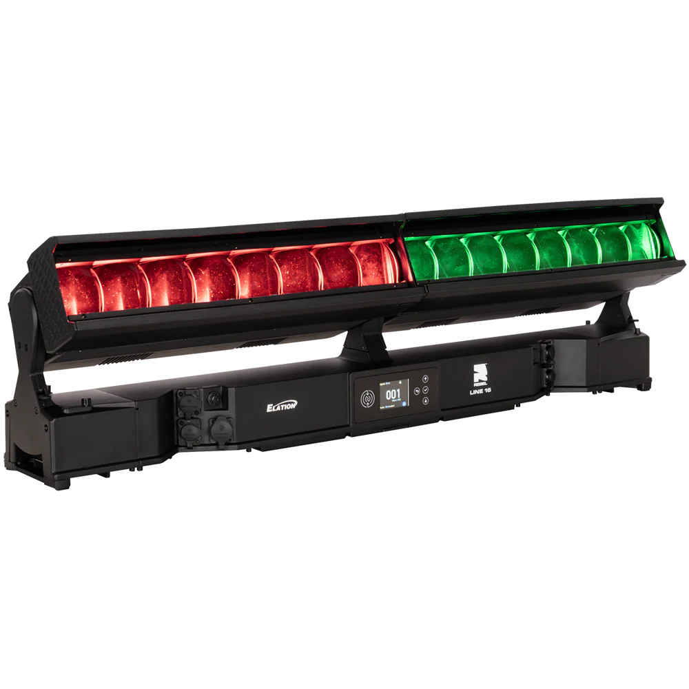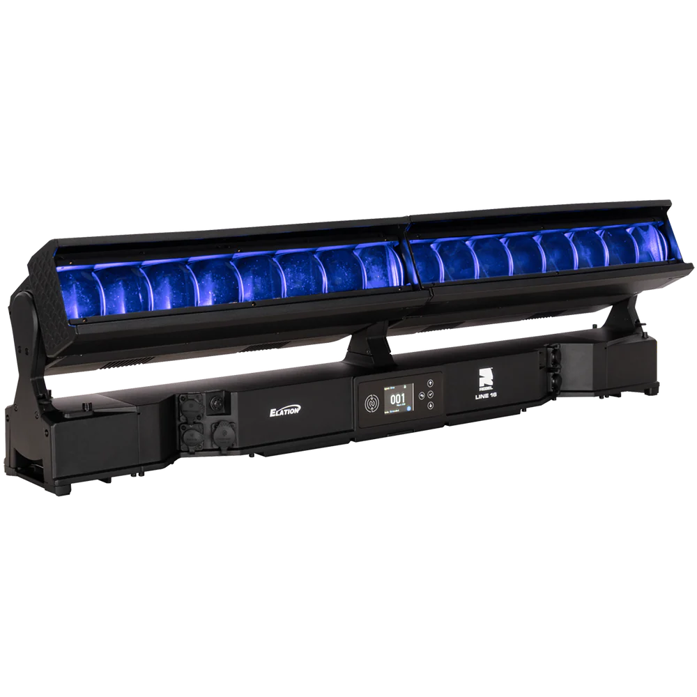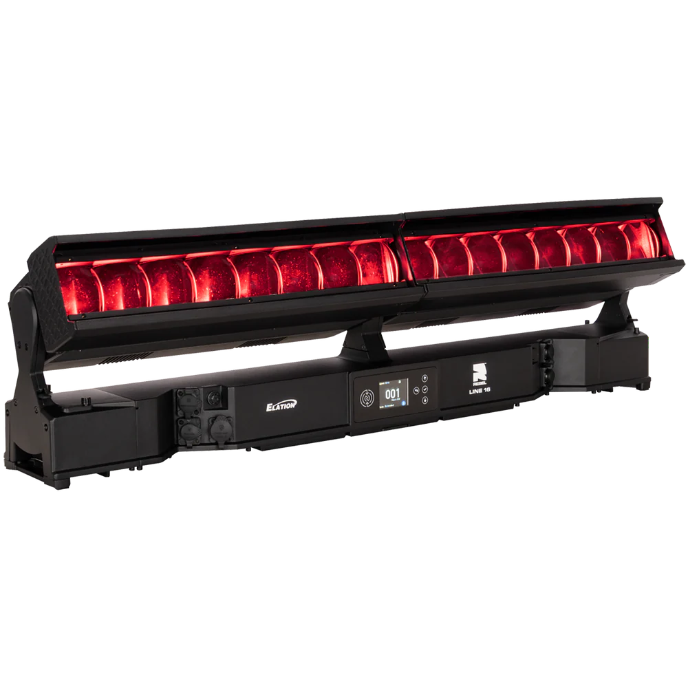 Die REBEL LINE 16 ist eine linear aufgebaute, motorisierte LED-Bar für den professionellen Einsatz in Bühnen-, Event- und Architekturbeleuchtung, bei der ein hoher Lichtoutput mit segmentierter Pixelansteuerung kombiniert wird. Das System arbeitet mit 16 RGBL-LED-Engines (je 60 W) und ergänzt diese um 32 kaltweiße SparkX-LED-Pixel (je 5 W), sodass neben einer gleichmäßigen Flächenbeleuchtung auch strukturierte Pixel- und Akzent-Effekte realisierbar sind. Der Gesamtlichtstrom beträgt 25.355 lm und unterstützt Anwendungen von kräftigen Wash-Looks bis zu klar definierten, grafischen Linien- und Pixelbildern – auch über größere Distanzen.