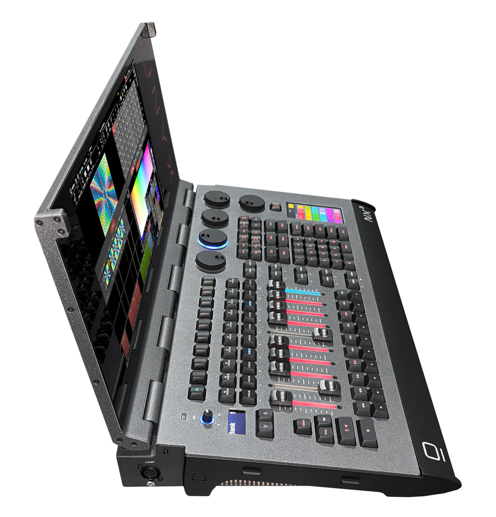 Die NX3™ verfügt über einen integrierten, klappbaren 17,3" Full-HD-Multi-Touchscreen sowie einen internen 4,5"-Parameter-Touchscreen. Zehn motorisierte Fader mit RGB-Hintergrundbeleuchtung, 50 optische Playback-Taster, frei belegbare Encoder und farbcodierte Bedienelemente sorgen für eine klare visuelle Rückmeldung und eine direkte, sichere Steuerung aller Funktionen.