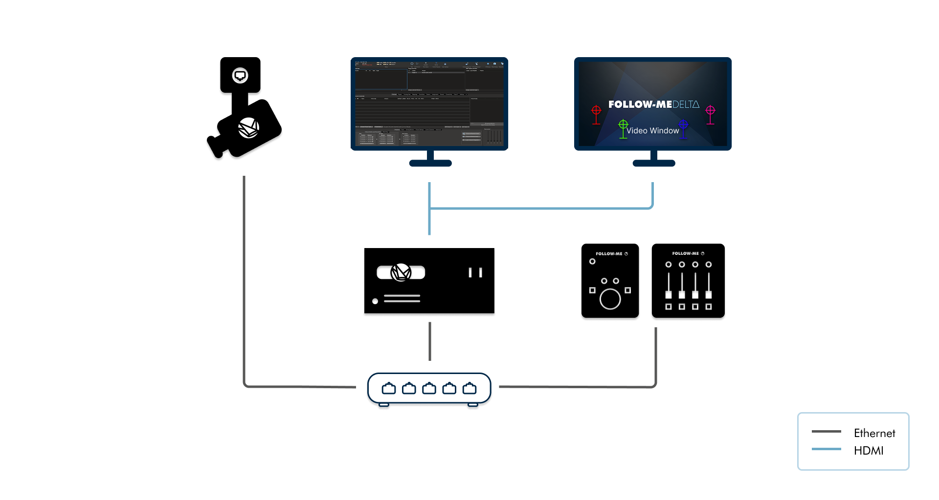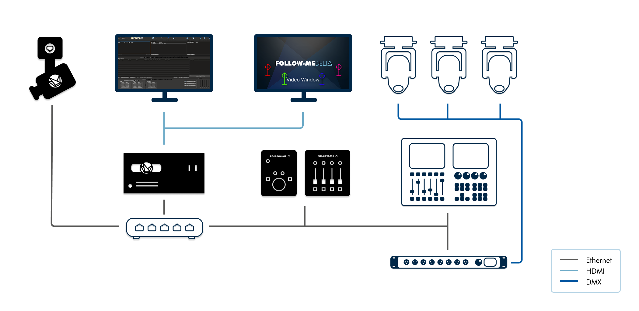FOLLOW-ME DELT∆ ist die neueste Generation eines manuellen 3D-Performer-Tracking-Systems für Licht-, Audio- und Videoanwendungen. Es basiert auf den etablierten Workflows von FOLLOW-ME 3D, wurde jedoch in Hard- und Software grundlegend modernisiert, um aktuelle Anforderungen wie höhere Videoauflösung, effizientere Setups und erweiterte Kreativ-Tools in komplexen Produktionen abzudecken.